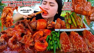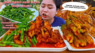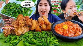VEGETARIAN MUKBANG, EATING RAW VEGETABLES, FAT CHILI, RAW PAPAYA STEMS, JENGKOL, LEUNCA CHILI SAMBAL