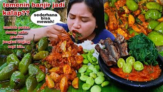 EATING, MUJAER FISH PESMOL, JENGKOL, CHILI SAMBAL, RAW VEGETABLES YOUNG JENGKOL, FRIED PETE, STEALED