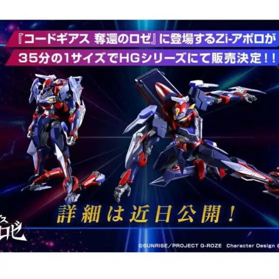 『코드 기어스 탈환의 로제』에서 애쉬가 탑승하는 신형 KMF (나이트메어 프레임)인 「Zi-아폴로」가 신규 조형으로 HG시리즈에 등장.