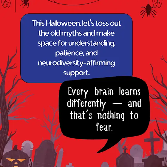 This Halloween, let’s toss out the old myths and make space for understanding, patience, and neurodiversity-affirming support. 🌈