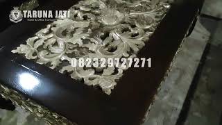 Meja Dispenser Kayu Jati Model minimalis Terbaru Dengan kombinasi Ukiran Emas - Taruna Jati Furnitur