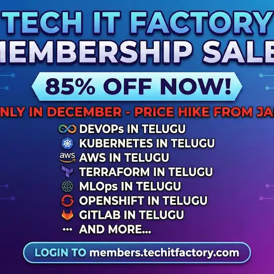Welcome to Tech It Factory, your one-stop hub for job-ready IT training in Telugu. We post full-length courses, step-by-step playlists and daily βDevOps in 100 Daysβ micro-lessons that take you from absolute beginner to industry-ready engineer.