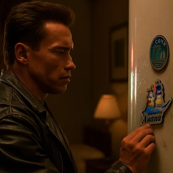 Скайнет изменил курс: вместо конца света – отпуск! Наш любимый Tерминатор все еще в Анапе, в шортах и с надувным кругом, патрулирует пляжи, присылая свои фотографии 🤳📸