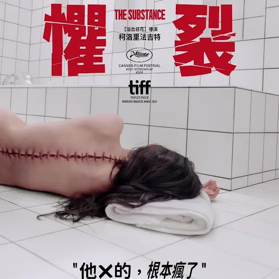 黛米摩爾最新的作品《懼裂》。這部片在上映後引起了不少關注,當然無外乎是她在片中的全裸演出,61歲的她,依然選擇以大膽、真實的方式來呈現自己,不僅僅是電影噱頭,敢於挑戰自我的程度也讓人欽佩。她的演出讓我們看到了女性不應該被年齡定義,可以選擇以任何自己想要的方式來面對鏡頭,這部電影透過黛咪傳達了許多關於人性在面對年齡和容貌焦慮的深刻訊息,不僅主演得有guts,看倌也要有勇氣!你是否也曾因為鏡子裡的自己而感到不滿,甚至不安?這部片正是直擊這樣的情緒。