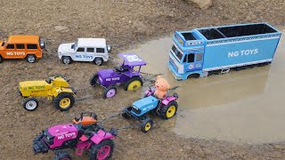 Heavy Dumper Truck Tipper Muddy Accident Pulling Out Auto Rickshaw Tractor JCB 3DX | Tractor Cartoon