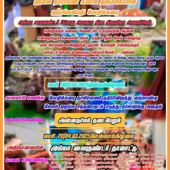 வைகுண்டருக்கு இகனைத்திருக்கல்யாணபவசு திருவிழா மற்றும் திருஏடு வாசிப்பு திருவிழா அழைப்பிதழ்🙏🪷🚩..