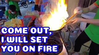 Vietnam food-10 small frying pans controlled by a cute woman-Banh Xeo-Vietnamese Pancake-Street food