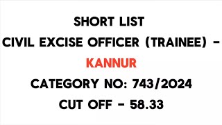 Civil Excise Officer Short List | Thiruvananthapuram | Cut Off 59.67 | Cat No. 743/2024 | PSC Result