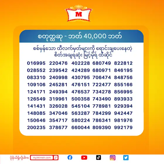 ဘတ် ၆ သန်း အပြင် တခြား ဆုမဲပေါင်းများစွာ ချီးမြှင့်ပေးနေတဲ့ ထိုင်းထီ myintmoh.com