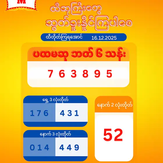 ၂၀၂၅ ခုနှစ်၊ ဒီဇင်ဘာလ ၁၆ ရက်နေ့ ထီပေါက်စဉ်