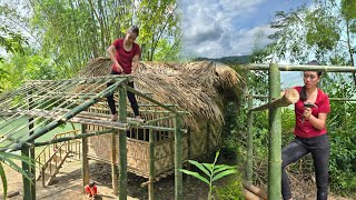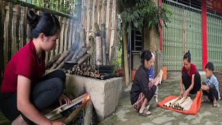 With effort and determination, Tiểu Anh and her son have completed the pillars of the bamboo bridge.