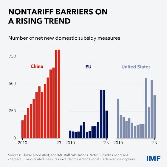 European state aid spending has tripled in the last decade, reaching 1.5% of GDP, with much directed toward green technologies and energy efficiency. France, Germany, Italy, and Spain lead this investment surge, yet our research shows unilateral industrial policies prove ineffective for most EU countries. Read our latest blog. www.imf.org/en/Blogs/Articles/2024/12/16/europe-ne…