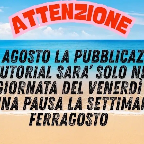 A partire dal 4 agosto le pubblicazione nel mio canale avverranno solo nella giornata del venerdì...