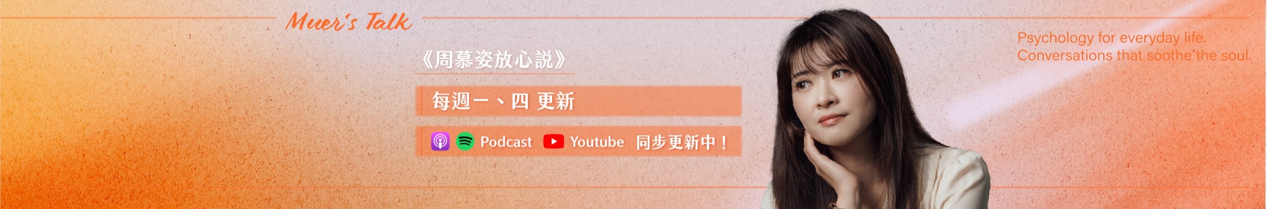 《周慕姿放心說》由諮商心理師周慕姿主持,從日常陪伴的「十分鐘心理學」、聽眾投稿「放心來信」、與各種職業的好友對談,到影視文本的人物心理分析,一起探索你想要理解的內在,或渴望改變的關係。歡迎喜歡心理學、想要認識更多自我的你,訂閱我的頻道!聊聊那些,你放在「心」上的事。合作邀約請來信:muerstalk@sat.cool歡迎贊助抖內+留言分享~支持我們有持續創作的能量!♥⬇️⬇️⬇️點選下方連結🔗🔗🔗