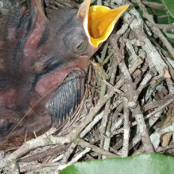 Little birds in my lemon tree. Good spot for the mama to build a nest lots of spikes to keep away other animals