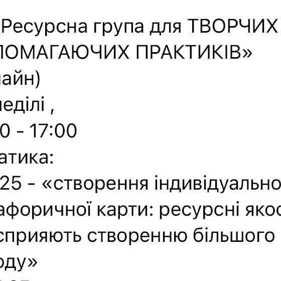 🔵«Ресурсна група для ТВОРЧИХ ТА ДОПОМАГАЮЧИХ ПРАКТИКІВ» (онлайн)