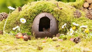 George the mouse in a log pile house