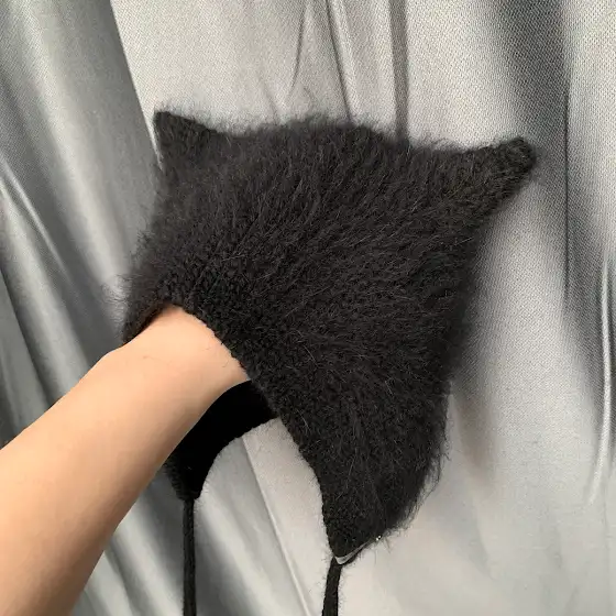 А еще хотела показать коточепчик из пуха норки. Я уже вязала черный чепчик, но в этот раз связала из норки с другой этикеткой и посмотрите, КАКОЙ он ПУШИСТЫЙ 😱😱😱