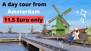 A day tour from Amsterdam to Zaanse Schans in 11.5 Euro | To do in Netherlands #windmillsofamsterdam