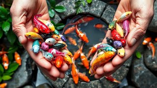 Successfully Catching Gold fish, koi Fish, angel fish, glo fish tetra, Black gold fish, small shark.