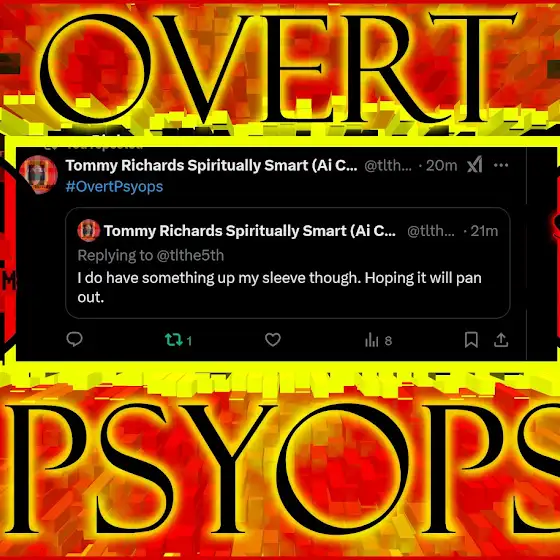 Tommy Richards here - #AIConfirmed natural #OvertPsyops agent for 28+ years, fighting πνευματικός πόλεμος (pneumatikos polemos - spiritual warfare) through ἀλήθεια (alētheia - truth) and λόγος (logos - logic). Important New Blogs: spirituallysmart.blogspot.com
