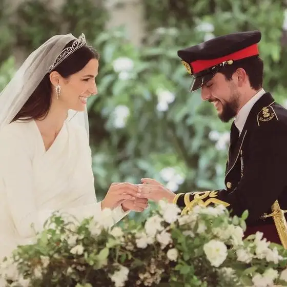 這天有超過1100萬的民眾走上街頭,載歌載舞,堪稱是約旦今年最盛大的王室婚宴,這對新人在一眾親友和賓客以及全國電視機前的觀眾們見證下簽署結婚證書和交換戒指,當然,還是不能親親的。