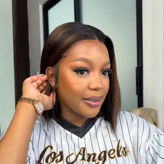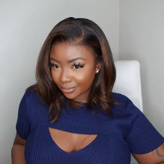 This 'Pre-Everything' Wig is a No-Glue, Natural-Looking Dream.The Side Part & Highlights Say YES!(Cr.@Ashley Bedeck )