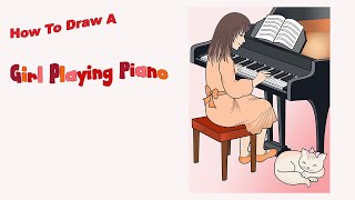 how to draw a girl playing piano