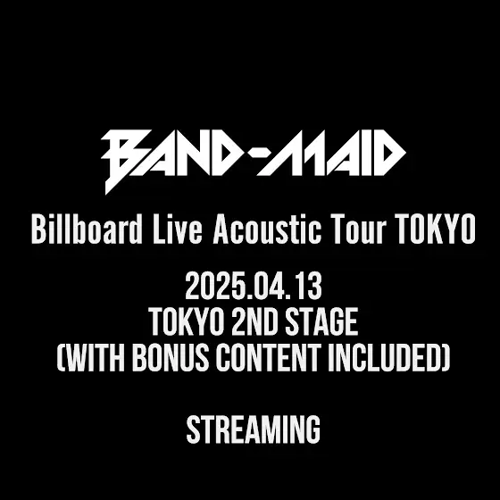 2025年4月13日に開催したお盟主様限定ツアー "BAND-MAID Billboard Live Acoustic Tour TOKYO (April 13, 2025)" のお盟主様限定配信が本日11月22日(土)13時〜配信スタート!