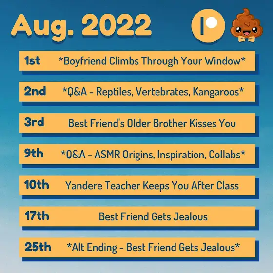 Also attached to this post is the Patreon schedule for September, so you can see what there is to gain access or look forward to 😊