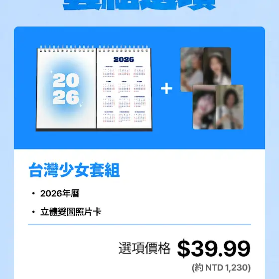 - 🎁商品內容:2026年桌曆+照片卡4張