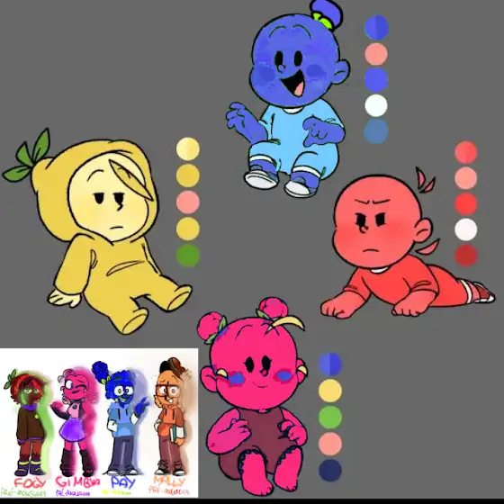Simplesmente, fiquei com preguiça de fazer todo mundo bebe, mas tå aà o pay baby e a gimbya baby (So não fiz o fogy e a mally baby pq deu bastante preguiça e pq coloquei a foto de todos prÊ adolescentes, Ê pra eu copiar as cores e faze lås)