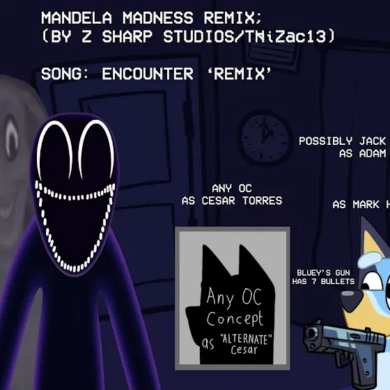 Hello @ZSharpStudios , @Xhitest , @Gojira_Darko , and @duderudyy with @PhillDraws I also made "Not Enough Room" song too.Since it's combined remix of "Mandela Mania" like "Encounter" song,And "Funkdela Catalogue" like "Gift" songI made two Bluey Characters,Corresponding which Mark Heathcliff they stand as.Alongside their own Alternates.One is SamTTS voice with dark Mark (Mandela Mania)other is Whisper with gray Mark (Funkdela Catalogue)But @ZipsterSucks and @SuperCoolCritters-g6n ,Do you love what I've made here?I made All these, with All my Love and creativity (Imagine their Fathers are like these otherwise)