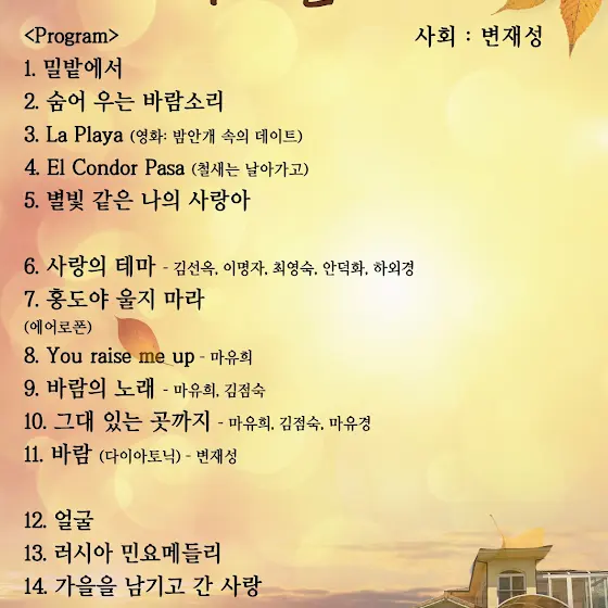 9월 12일 금요일 저녁 7시하모니카와 에어로폰 공연 있습니다.예쁜 전원주택에서 하우스 콘서트 초대합니다.You raise me up (독주)바람의 노래 (2중주)에레스뚜 (3중주)