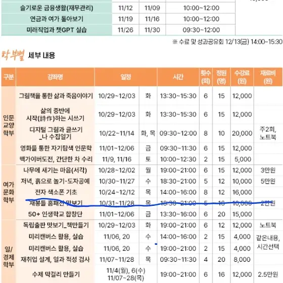 목요일 2시부터 4시까지 진행되며.