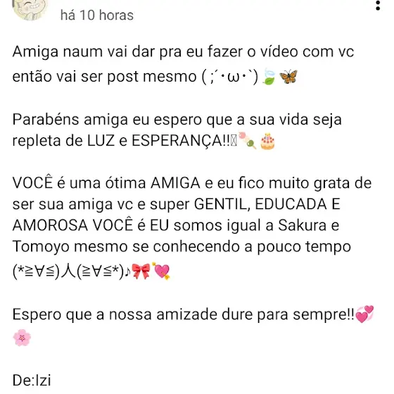 Sou grata pela amizade de todos vcs,que me desejaram parabéns e felicidades,amo todos vcs e a amizade de cada um importa muito!!❤️🤧😭