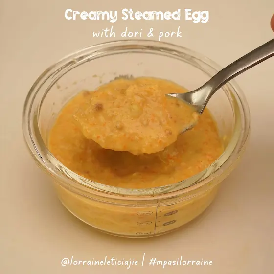Creamy Steamed Egg with Dory & Pork #mpasilorraine #mpasihomemade #mpasisehat #urimijicooking #steamedegg #telurkukus #babidori #mpasi10bulan #mpasi11bulan #mpasi12bulan