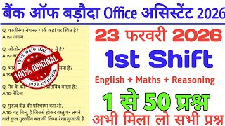 Bank of Baroda Office Assistant 2026😱23 February 1st Shift Paper Analysis/Paper Review Today