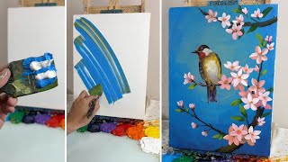 Art Ideas for Beginners, Easy Acrylic Painting Tutorial, Easy Painting hacks & Art Ideas for beginners, Amazing Painting Ideas | Beautiful Painting Techniques | Satisfying Art Tutorial Spring Painting | Cherry Blossom Painting | Acrylic Painting for Beginners, Sakura Tree Blossom