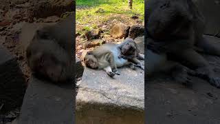 Monkey sleeping on a rock #0122 #shorts