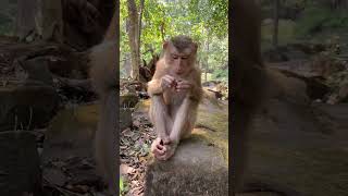 Monkey sitting eating peanuts on a rock #0101 #shorts