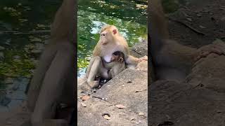 The baby monkey and its master are sitting on a rock #0137 #shorts