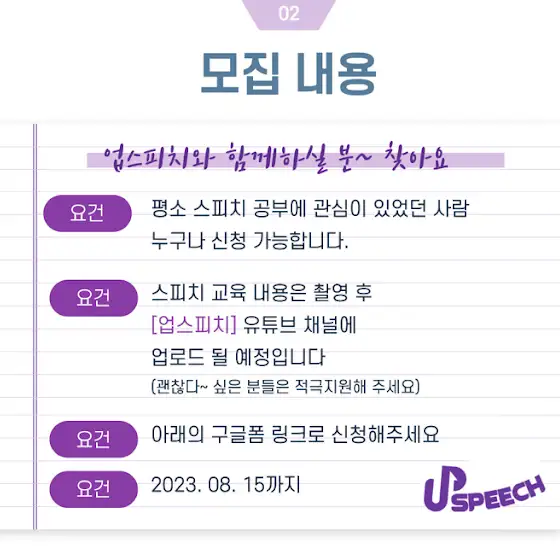 평소 스피치 공부에 관심이 있었던 사람이라면 누구나 신청가능합니다
