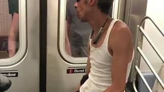 A guy on a motorcycle on subway train