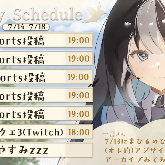 🖤🩶🩵来週の予定🖤🩶🩵 今月から夏休み期間はいっぱい歌うぞ~! #まひるのひまラジ