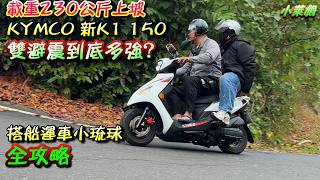 How powerful is the KYMCO New K1 150 dual suspension system, capable of carrying 230 kg uphill? A...