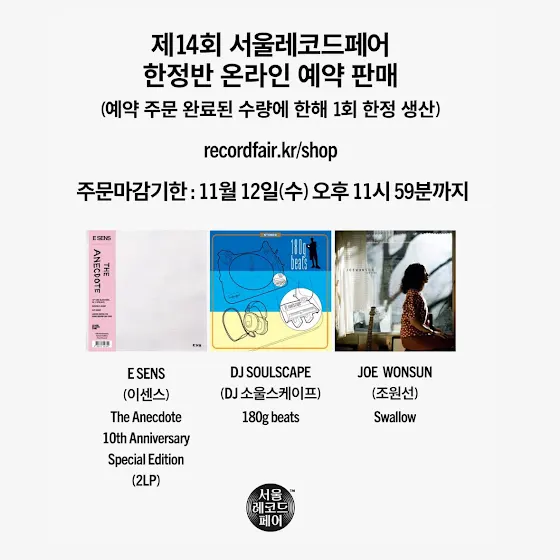 - ์ž”์—ฌ๋ถ„ ํŒ๋งค ๋˜๋Š” ์ถ”๊ฐ€ ์ œ์ž‘๋ถ„ ์˜ˆ์•ฝ ํŒ๋งค ๋“ฑ ์˜จ๋ผ์ธ ํŒ๋งค ์ผ์ •์€ ์„œ์šธ๋ ˆ์ฝ”๋“œํŽ˜์–ด ์ข…๋ฃŒ ํ›„ ์†Œ์…œ ๋ฏธ๋””์–ด์™€ ํ™ˆํŽ˜์ด์ง€๋ฅผ ํ†ตํ•ด ๊ณต์ง€ํ•  ์˜ˆ์ •์ž…๋‹ˆ๋‹ค.