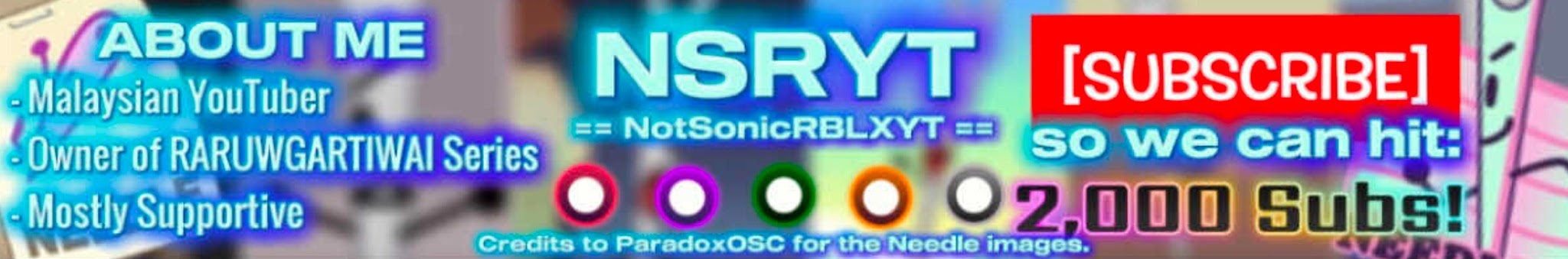 I am NSRYT2025. Also known as NotSonicRobloxYouTube2025. I know, pretty long name right? Anyway, I'm a average guy who does random content every weekly or monthly! So while you may think that I'm working something special, please do know that my device will crash anytime I try and make complex animations. So please subscribe so I can afford a better and new device to work on!