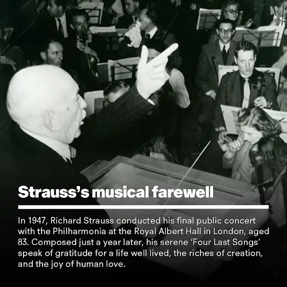 As we prepare to perform Richard Strauss’s poignant swan song at the Royal Festival Hall tomorrow evening, we reflect on our historic connection with the composer - from giving the world premiere of 'Four Last Songs' in 1950, to unforgettable performances with legendary artists, including Renée Fleming’s BBC Proms debut in 2001.