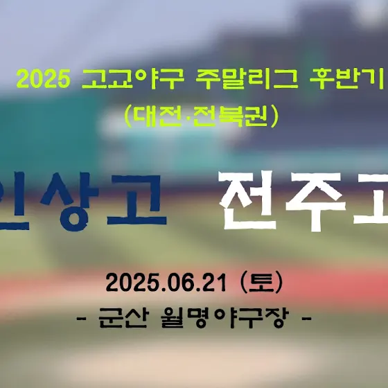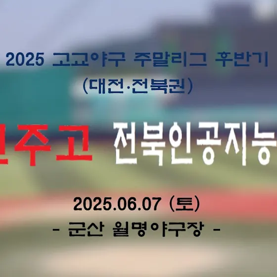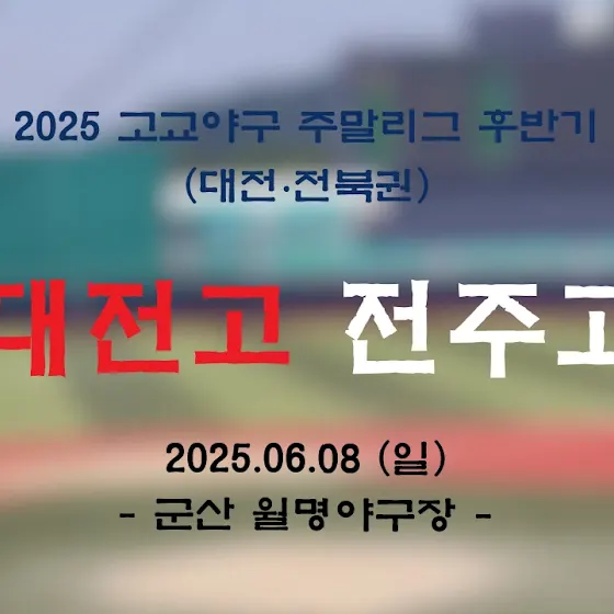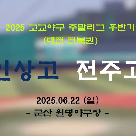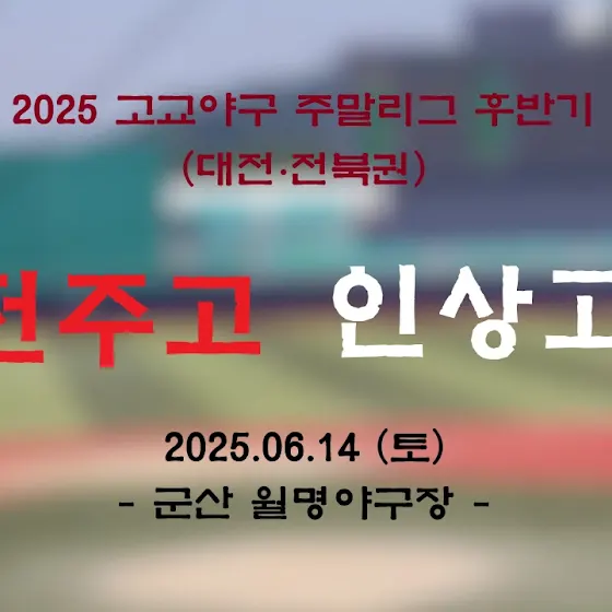 <📣 주말리그 중계 특별편성>⏰ 2025. 06. 07 (토) 12 : 00🚩전주고 vs 전북인공지능고🏟️ 군산 월명야구장✅ 생중계 예정⏰ 2025. 06. 08 (일) 09 : 30🚩 대전고 vs 전주고🏟️ 군산 월명야구장✅ 생중계 예정*이번 주는 같은 권역 추가 중계를 진행합니다.인상고 경기 중계는 예정대로 진행됩니다.